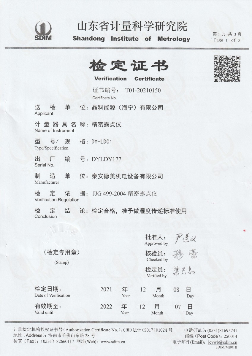 | 上一條:安徽晶科能源有限公司-精密露點(diǎn)儀(溫度) | 下一條:高精度制冷恒溫槽(-80~100℃)校準(zhǔn)證書(shū) |