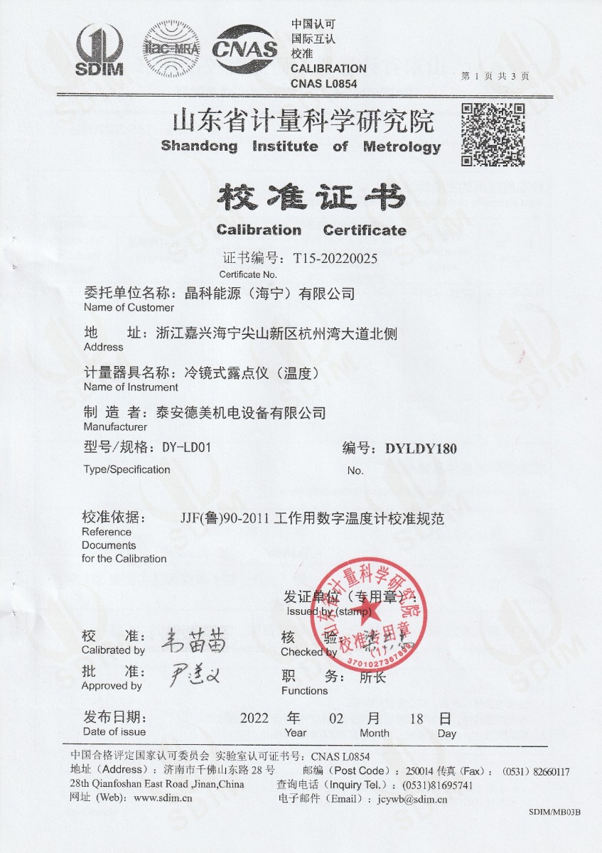 | 上一條:河北京車軌道交通車輛裝備有限公司-冷鏡式露點(diǎn)儀檢定證書 | 下一條:DY-HT2M-C高溫面源黑體爐(100mm) |
