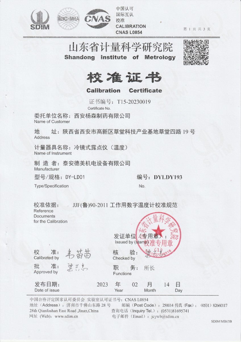 | 上一條:西安楊森制藥有限公司 冷鏡式露點(diǎn)儀 檢定證書 | 下一條:高精度制冷恒溫槽(-80~100℃)校準(zhǔn)證書 |