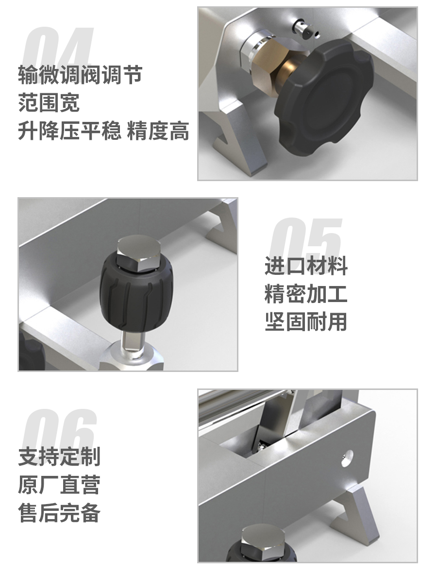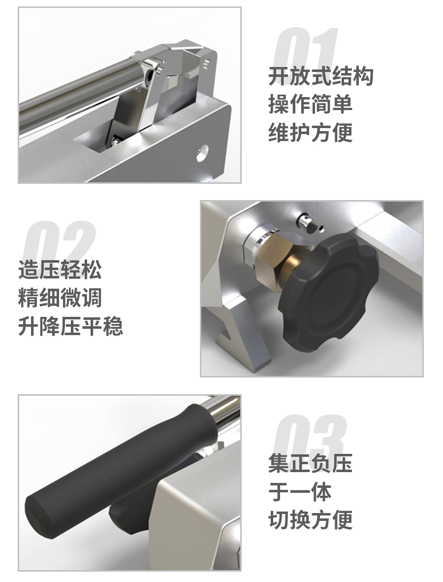DY-YLM14高壓氣壓泵(-0.095~14)MPa高壓氣壓泵采用透明開放式設(shè)計,結(jié)構(gòu)簡單、可靠性高、操作維護方便、不易泄漏、升降壓平穩(wěn),回程檢定易操作。材料采用鋁合金,質(zhì)量輕,便于攜帶,可適用于現(xiàn)場和實驗室。廣泛應用于校驗各種壓力表、壓力變送器、壓力開關(guān)、壓力傳感器等工業(yè)過程儀表。