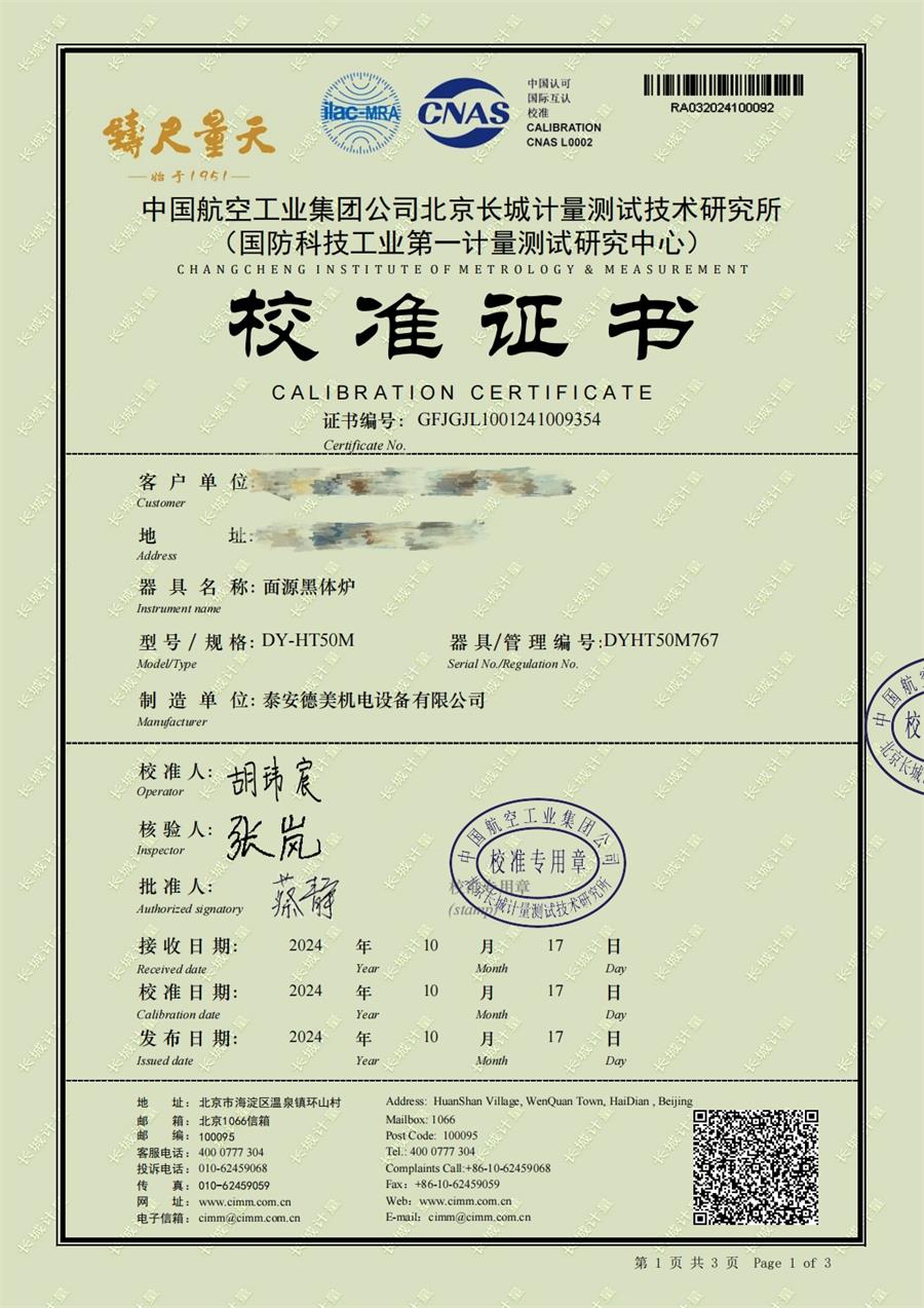 | 上一條:高溫黑體爐(700-1600℃)校準(zhǔn)證書 | 下一條:高精度制冷恒溫槽(-80~100℃)校準(zhǔn)證書 |