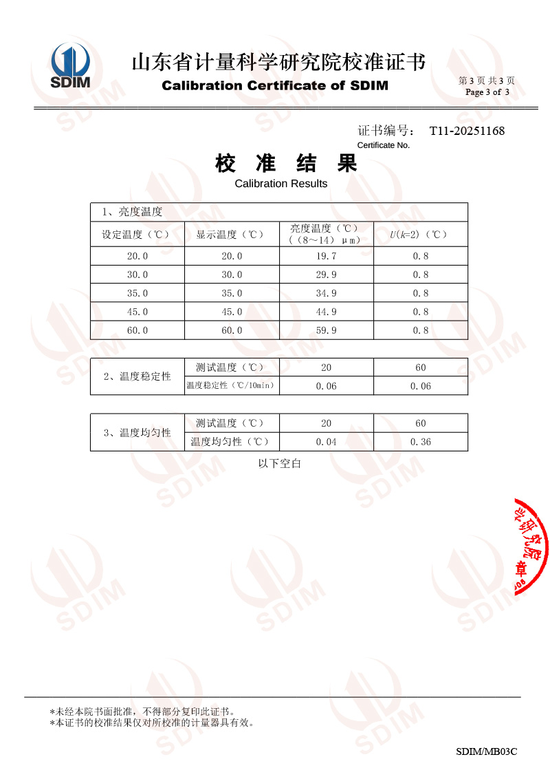 | 上一條:高精度低溫黑體校準(zhǔn)證書 | 下一條:高精度制冷恒溫槽(-80~100℃)校準(zhǔn)證書 |