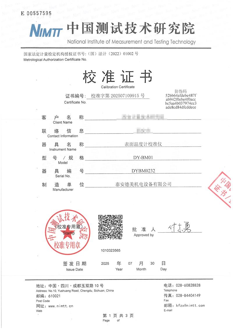 | 上一條:高精度低溫黑體(-10-100℃)校準(zhǔn)證書 | 下一條:高精度制冷恒溫槽(-80~100℃)校準(zhǔn)證書 |