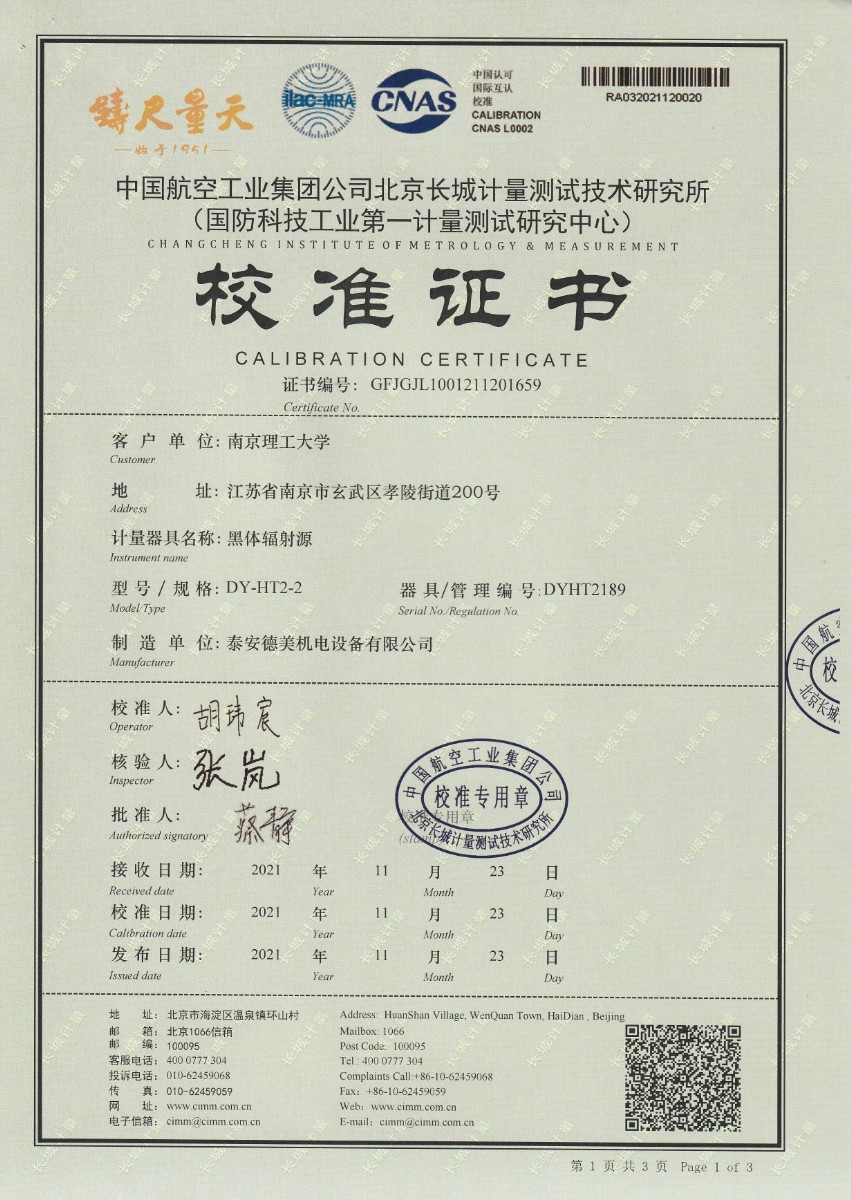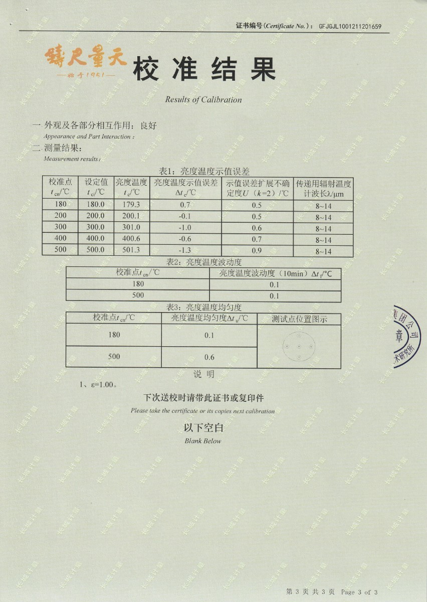 | 上一條:南京理工大學(xué)-黑體輻射源校準(zhǔn)證書40-250℃ | 下一條:濕度發(fā)生器-校準(zhǔn)證書 |