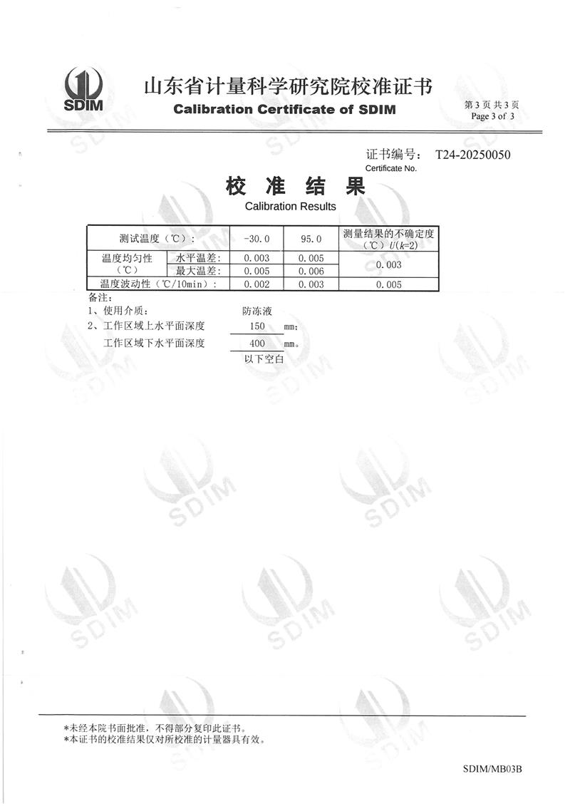 制冷恒溫槽(-30~95℃)校準(zhǔn)證書