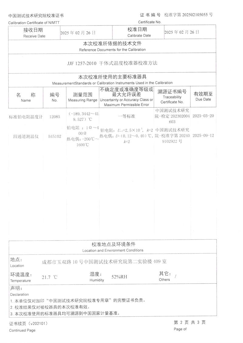 上一條:高溫黑體爐(800~1600℃)校準證書下一條:高精度制冷恒溫槽(-80~100℃)校準證書
