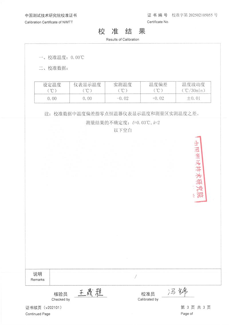零點恒溫器校準證書 2025-3-1 本文被閱讀 5855 次
