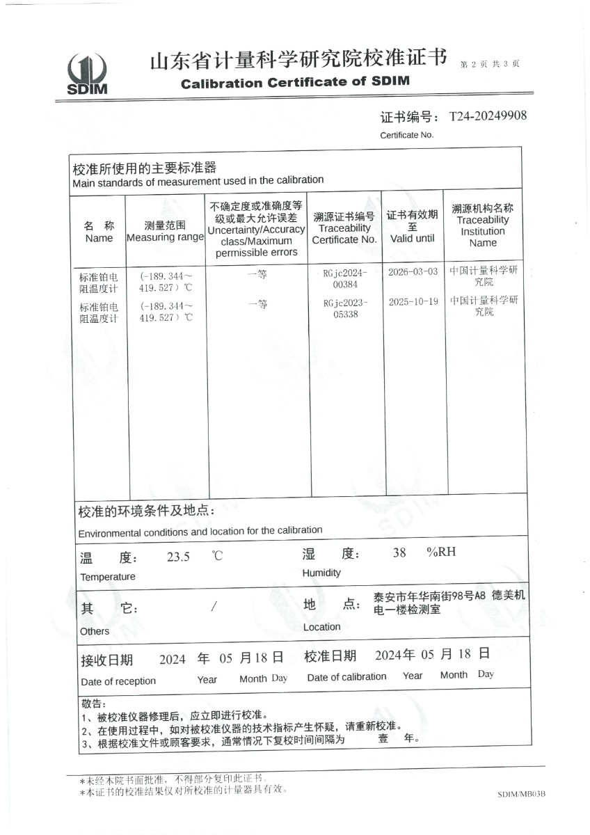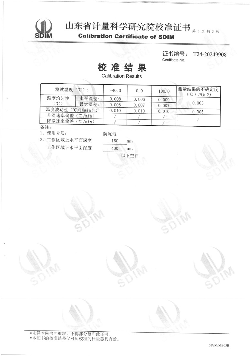 制冷恒溫槽(-40~100℃)校準證書 2024-5-31 本文被閱讀 6665 次